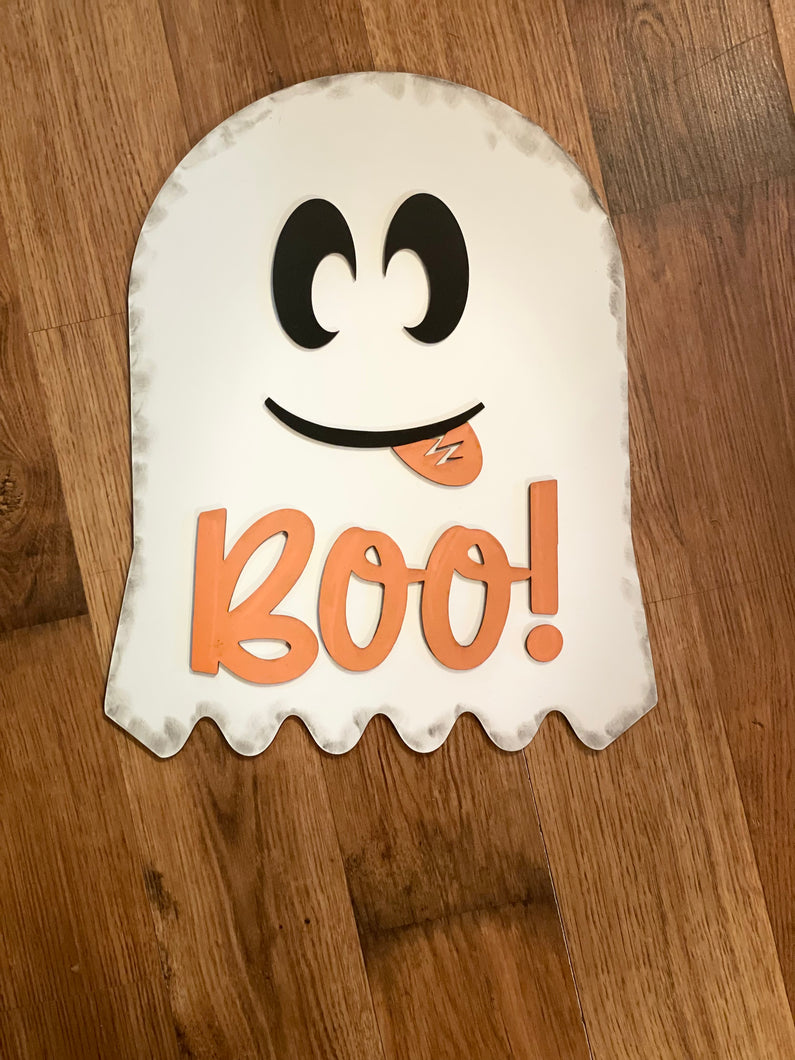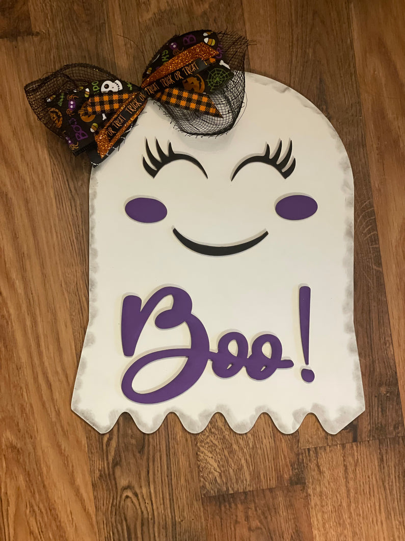 Girl Ghost Boo Sign with Bow